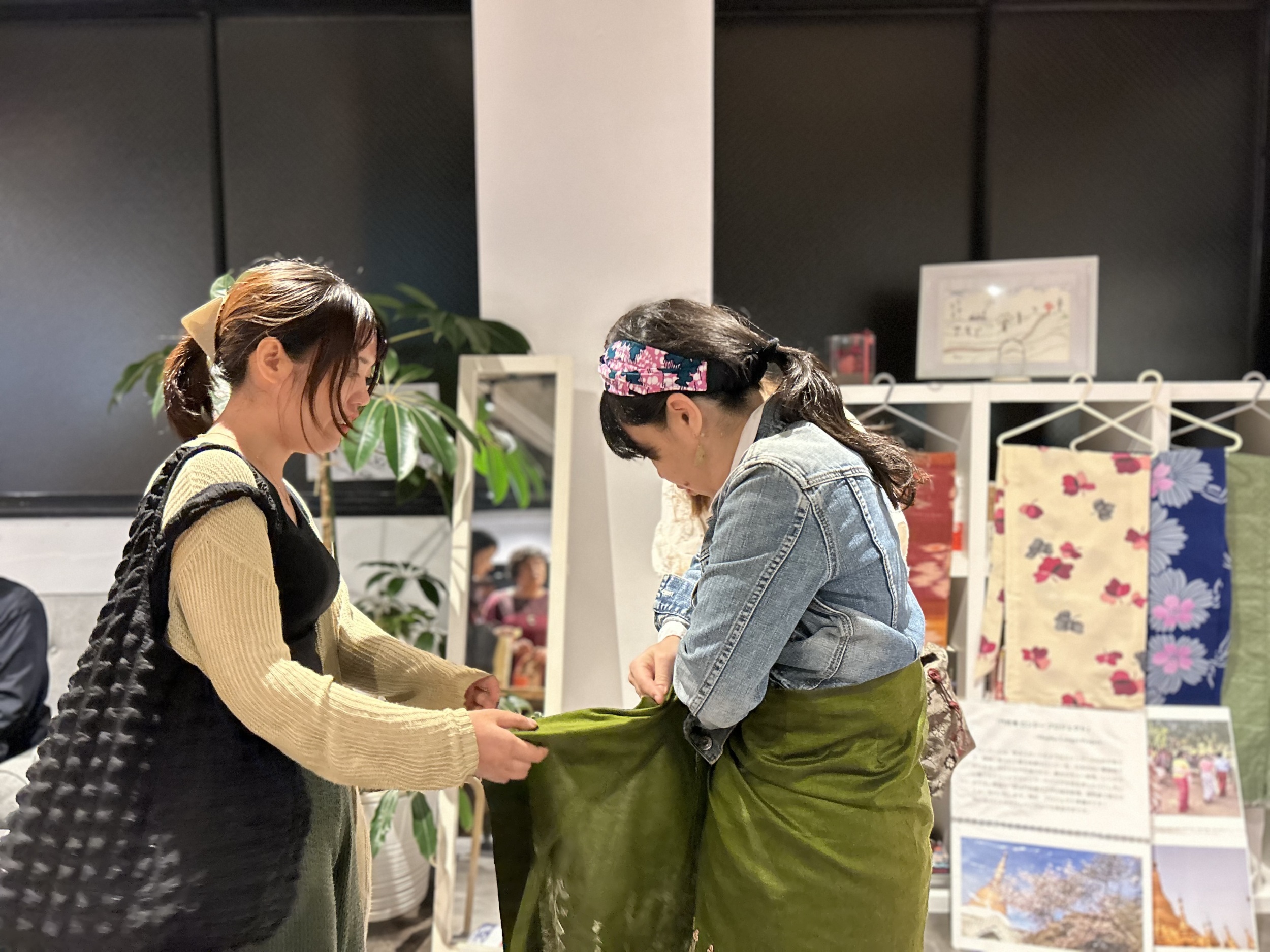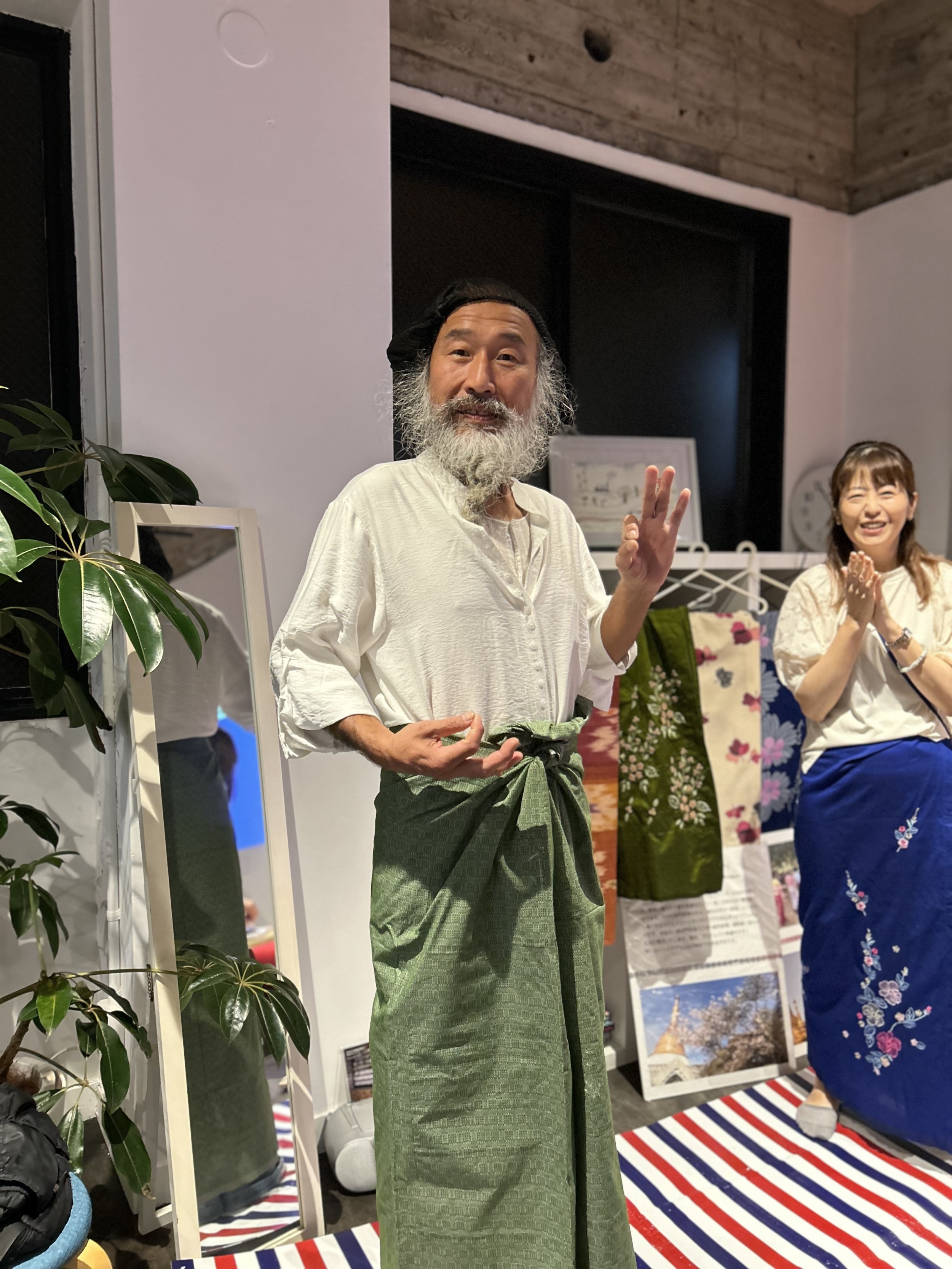 伝統衣装のロンジー体験や、美容化粧品タナカ体験など、まさにミャンマー尽くしの一日。